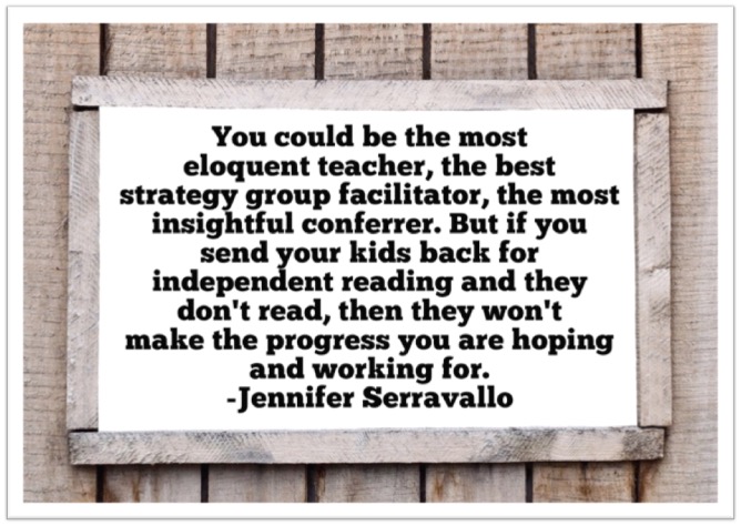The words of Jennifer Serravallo ring true for me. Over the years I have found that a huge part of getting kids to read and read a lot is a huge undertaking. Our job is not just to teach but to sell reading to our kids. And the time spent to know our books, market our libraries, and create interest is time well spent.