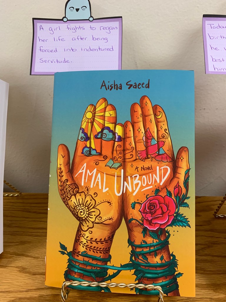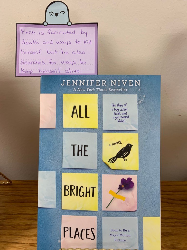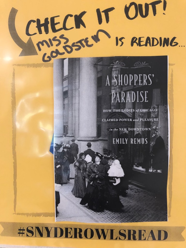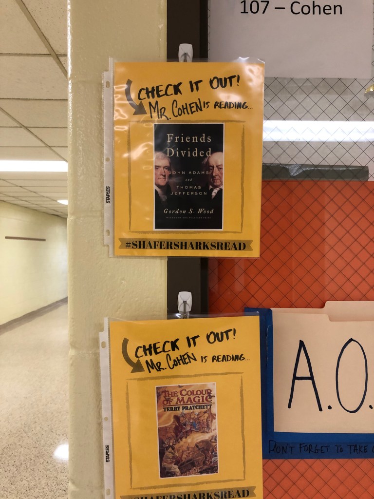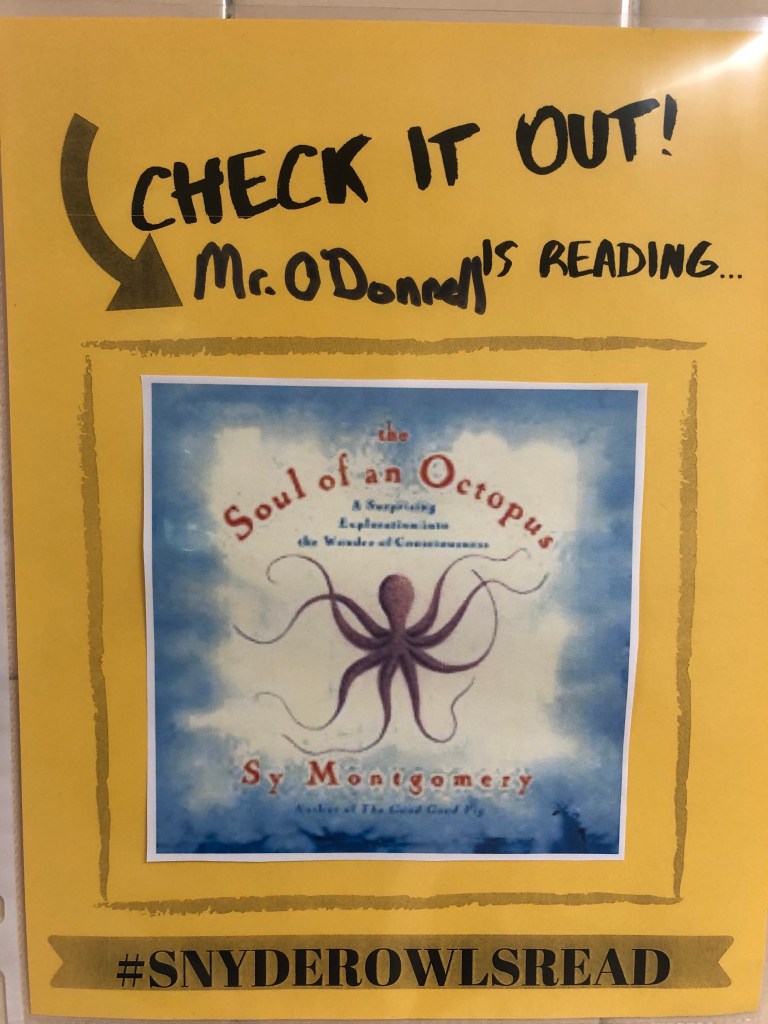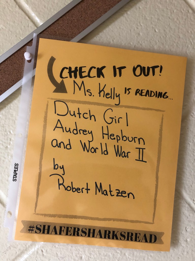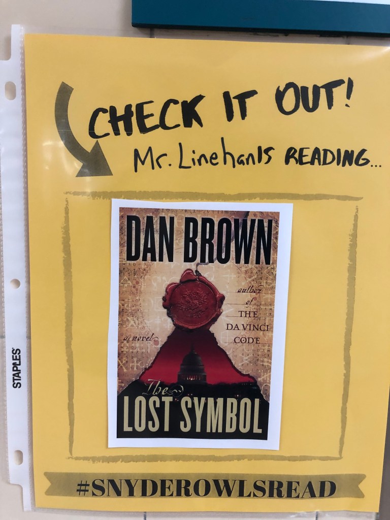 Mrs. Simon at Snyder is very well known for her amazing library displays and catchy blurbs. When she isn’t talking about books, she lets the blurbs do it for her.