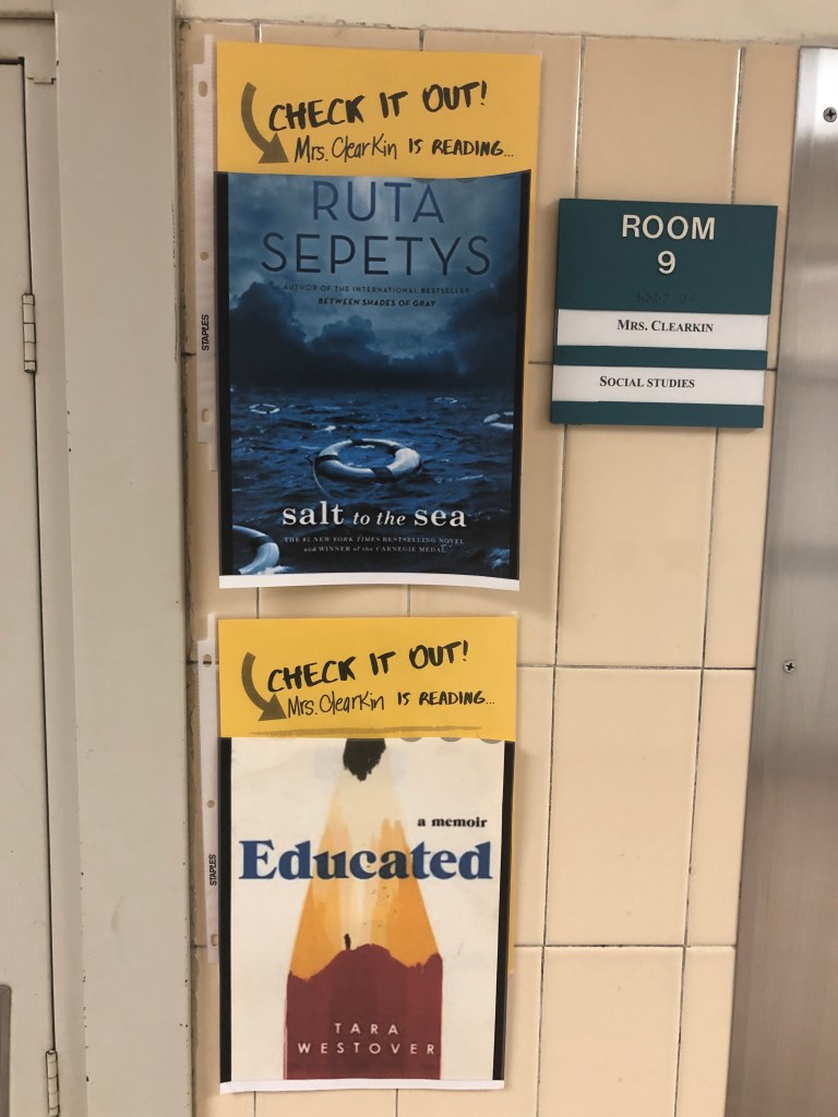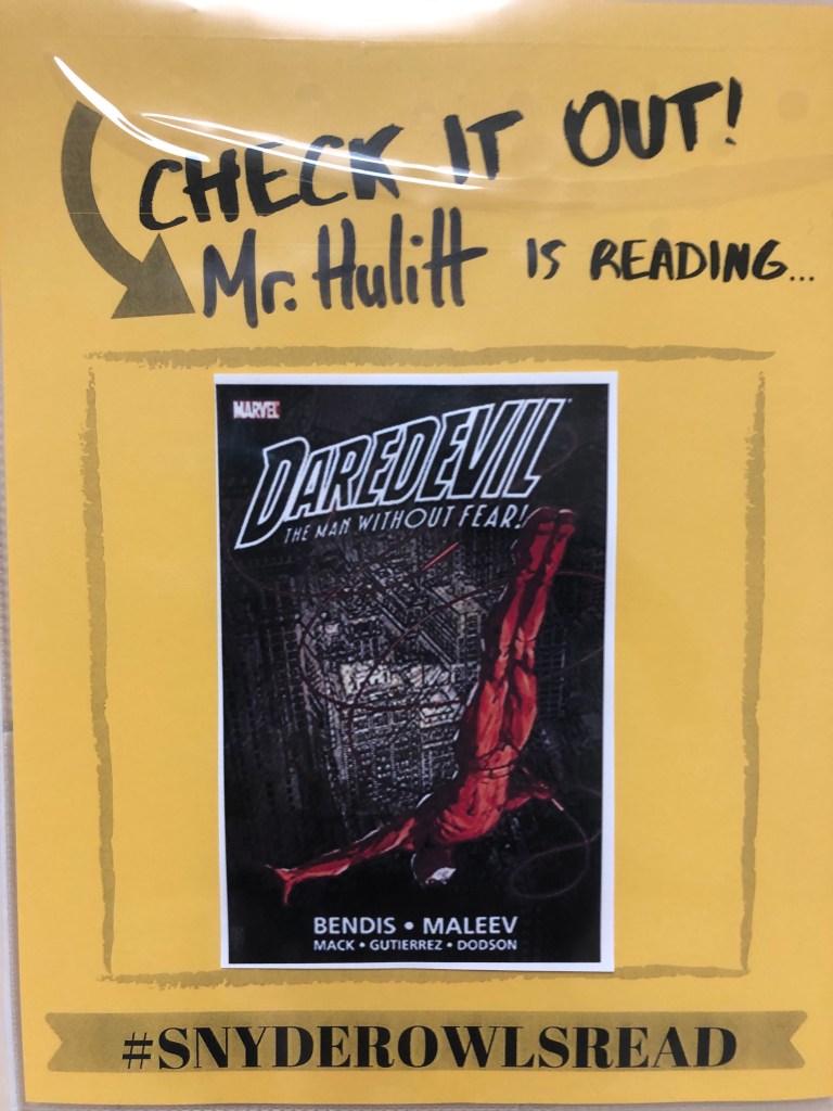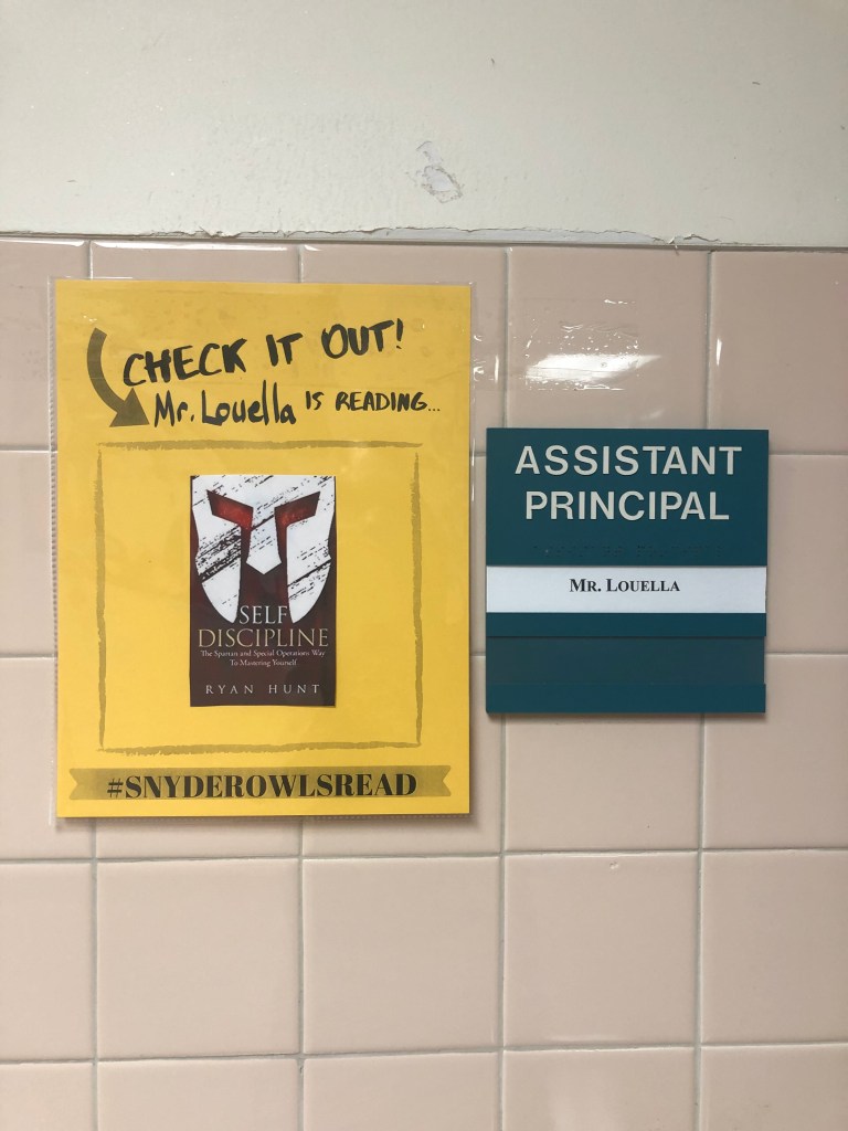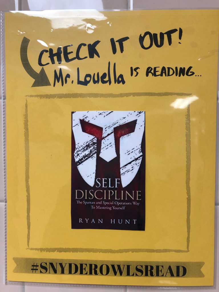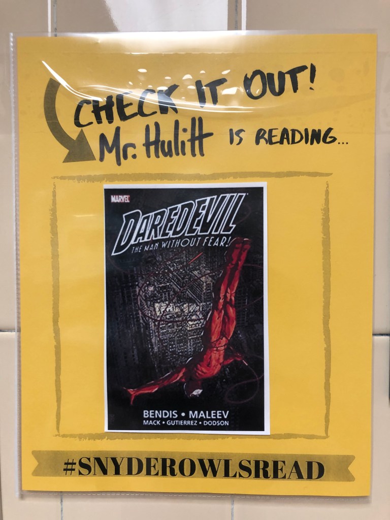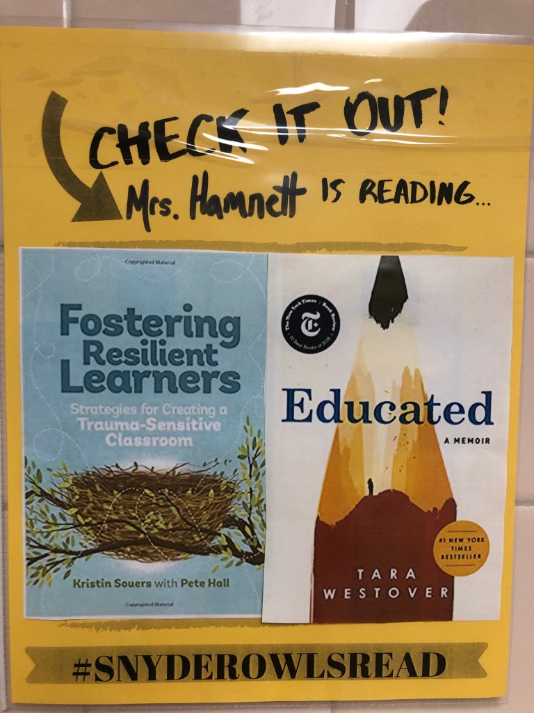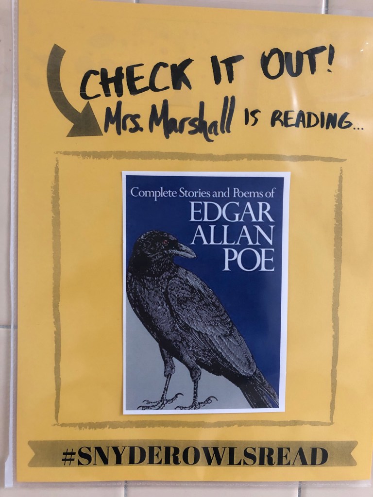 Teachers, secretaries, administrators, instructional assistants, social workers, coaches, and nurses who have taken on the Mirror Challenge at both middle schools have been sharing their reading outside their doors too. What a great way to talk about common interests, books, and reading for different purposes! The school nurse at Snyder and the K-8 Social Emotional Learning Instructional Coach bonded at lunch over a similar interest they realized through sharing their current read! We are modeling that reading is not just something we have to do for school.
