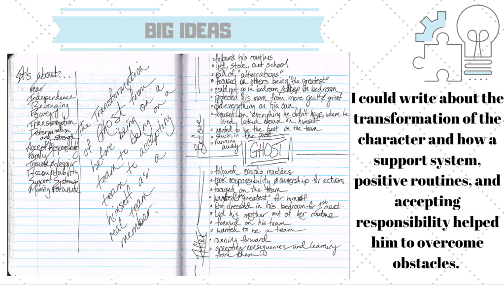 It also helped me to better understand what kids may need to be successful and how the notebook could be used to track thinking in order to write about deeper meanings.