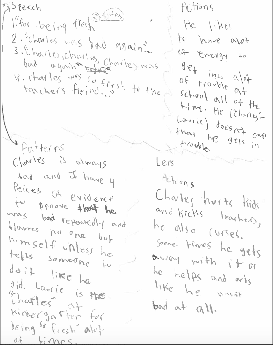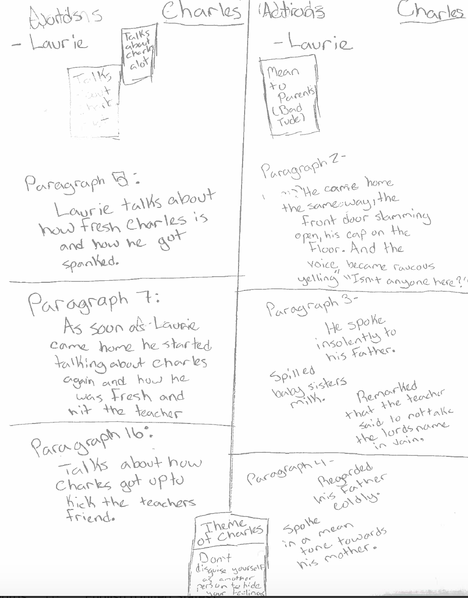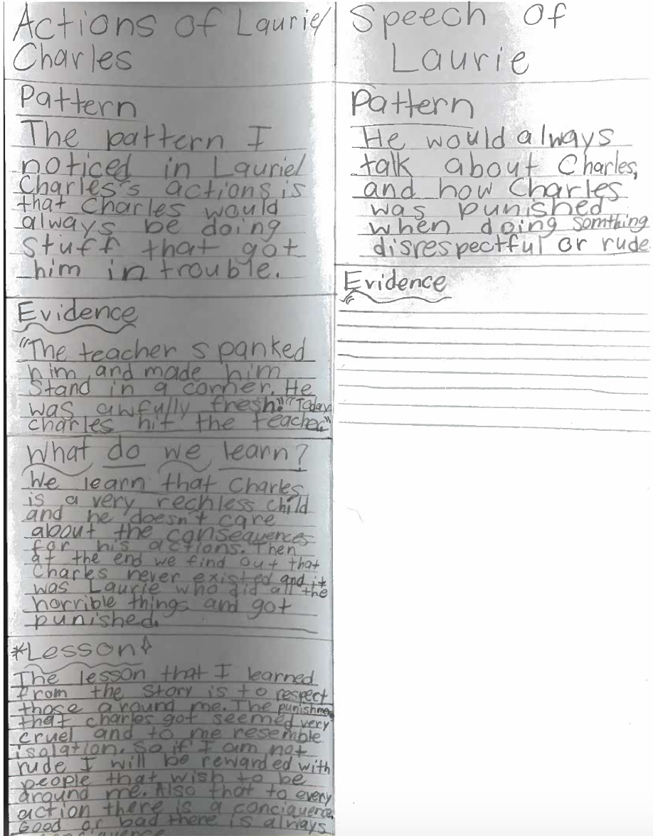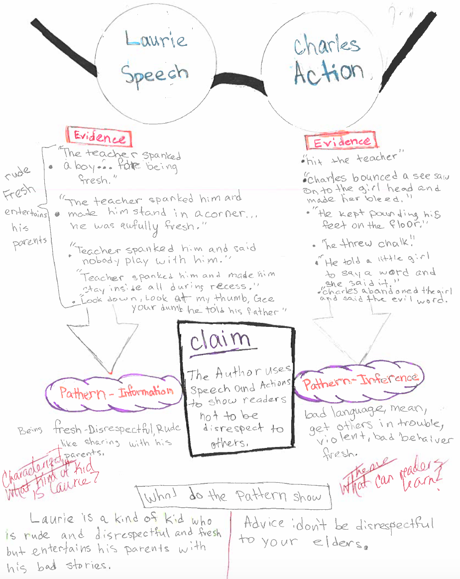 Students, for the most part, wrapped up their reading, noticing, and noting for the three texts and we moved on to the next minilesson. This lesson was to help them organize their thinking and push it a bit further, in order to determine their claim, what they had to prove in their essay. Each student chose the story they wanted to use to write their TDA and even though they have strong partnerships, they did not need to choose the same story as their partner. They know enough about all three stories that they can still be a support but have the choice that keeps them engaged.