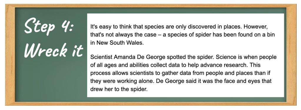 After studying this wrecked version of an informational text, we are showing not telling our students that adjectives provide precision and clarity in order to help readers understand. This would then lead to an invitation to revise.