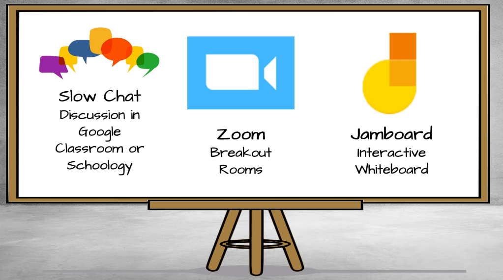 There is the option of the slow chat which is a discussion in the learning platform (Schoology for secondary teachers and Google Classroom for elementary). A discussion question can be posted and students can respond, read the responses of others and respond to them as well. This is called a slow chat for a reason. It’s not the quickest of turn and talks, but it does provide the student-to-student interaction that is crucial in learning.