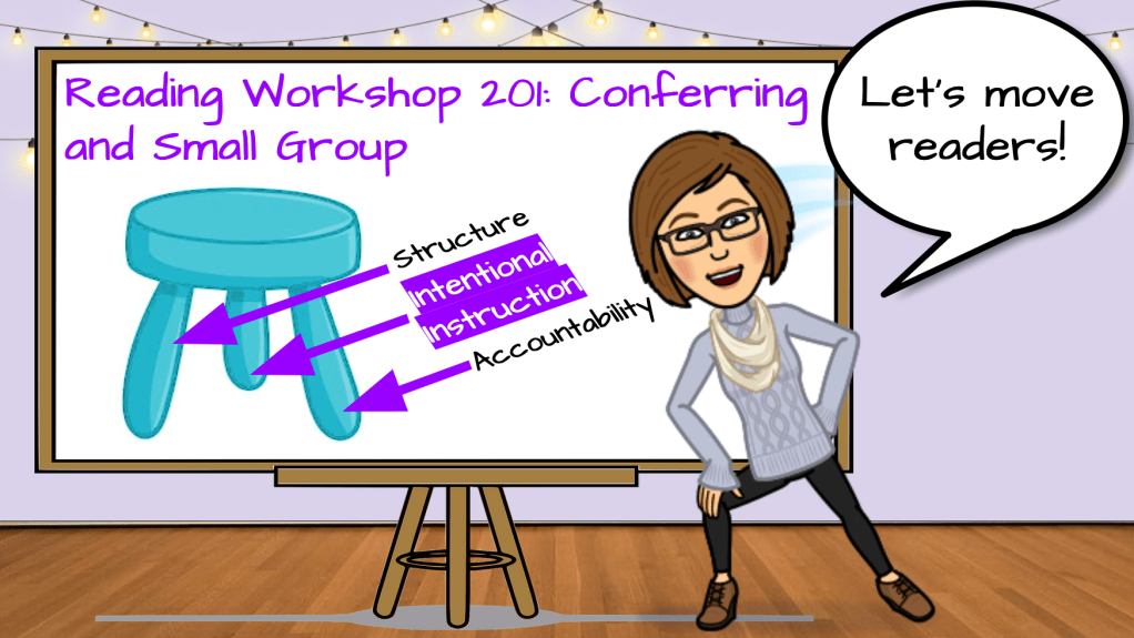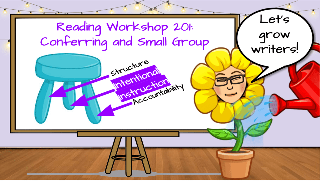 While balancing the structure of Reading Workshop is often a focus in the the early stages of becoming a workshop teacher, teachers need to next look next to the intention behind their instruction during the independent work time. This is where your strongest tools- conferring and small group instruction- are being used. It is during conferring and small group instruction that we are differentiating instruction and preparing readers to be independent thinkers because we are teaching them the strategies they need now and can draw from not just in the book they are reading but in any book.