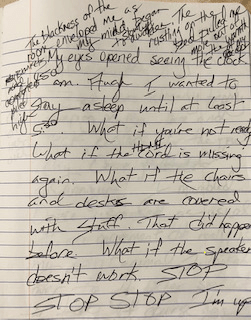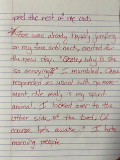 What kids really need to see? The above images are my rewrite to show you, the reader, how I went about the task in steps. But kids need to see what the writing really looks like. Writing does not come out perfect from the moment the pen hits the page. Below is what I really wrote during the exercise. Drafting is messy!