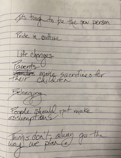 They then were asked to add one or two ideas to the wall. Below are some of the issues noticed within the group as well as my notebook jots while listening.