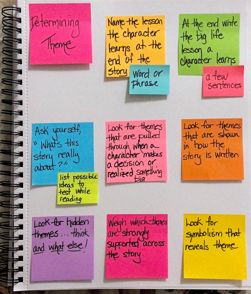 Then, I would push this reader to move from a list of issues to a list of potential themes by asking, “What can readers learn about power/betrayal/fear/poverty from this example?” Then look closely while reading to see if there are more instances that will support those themes.