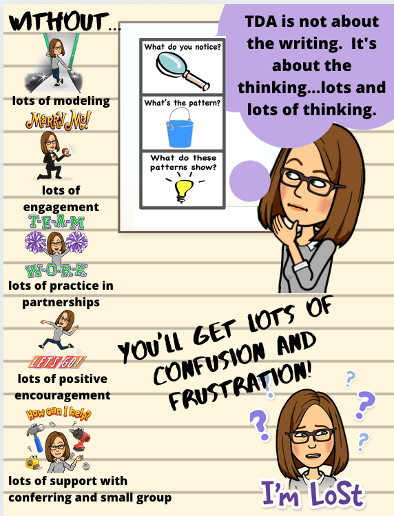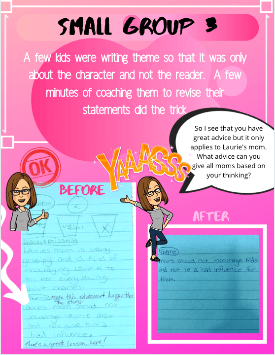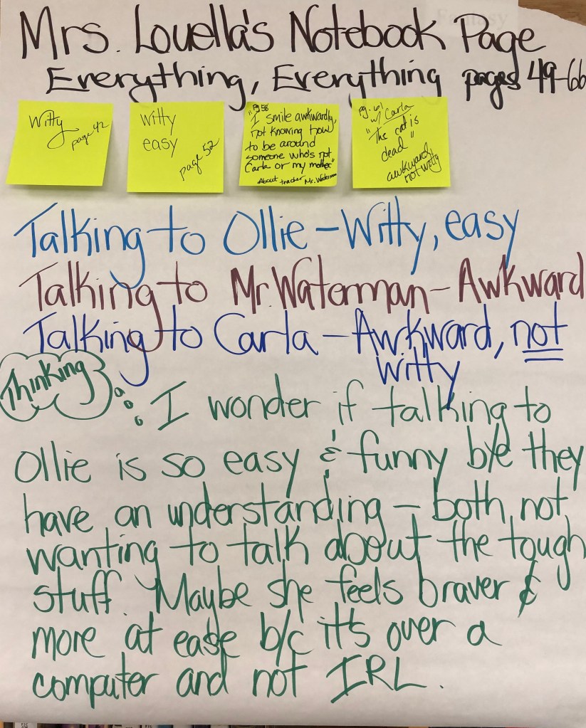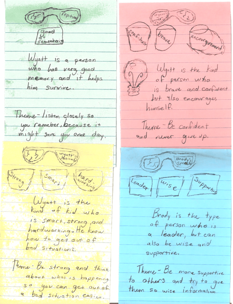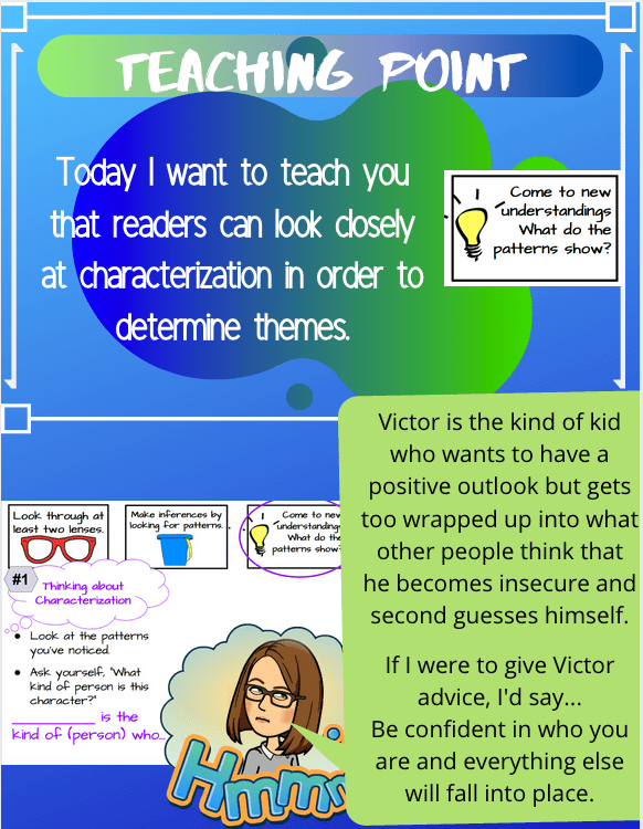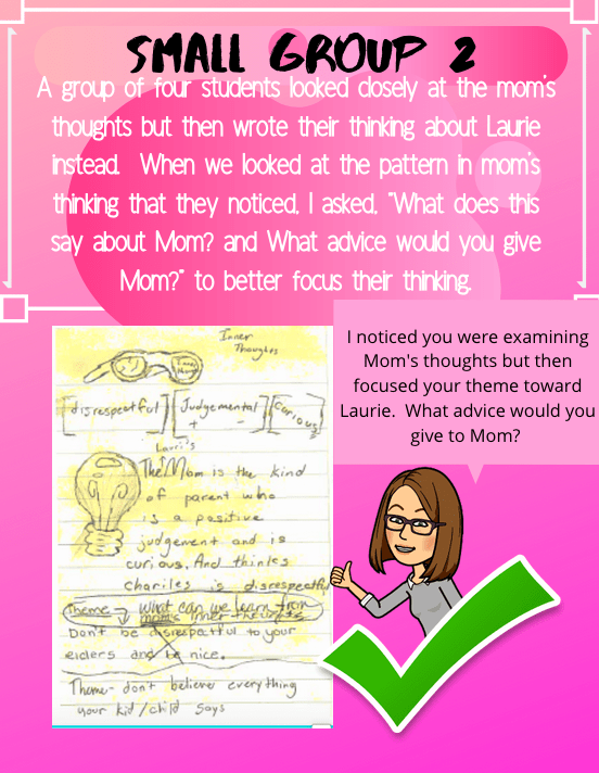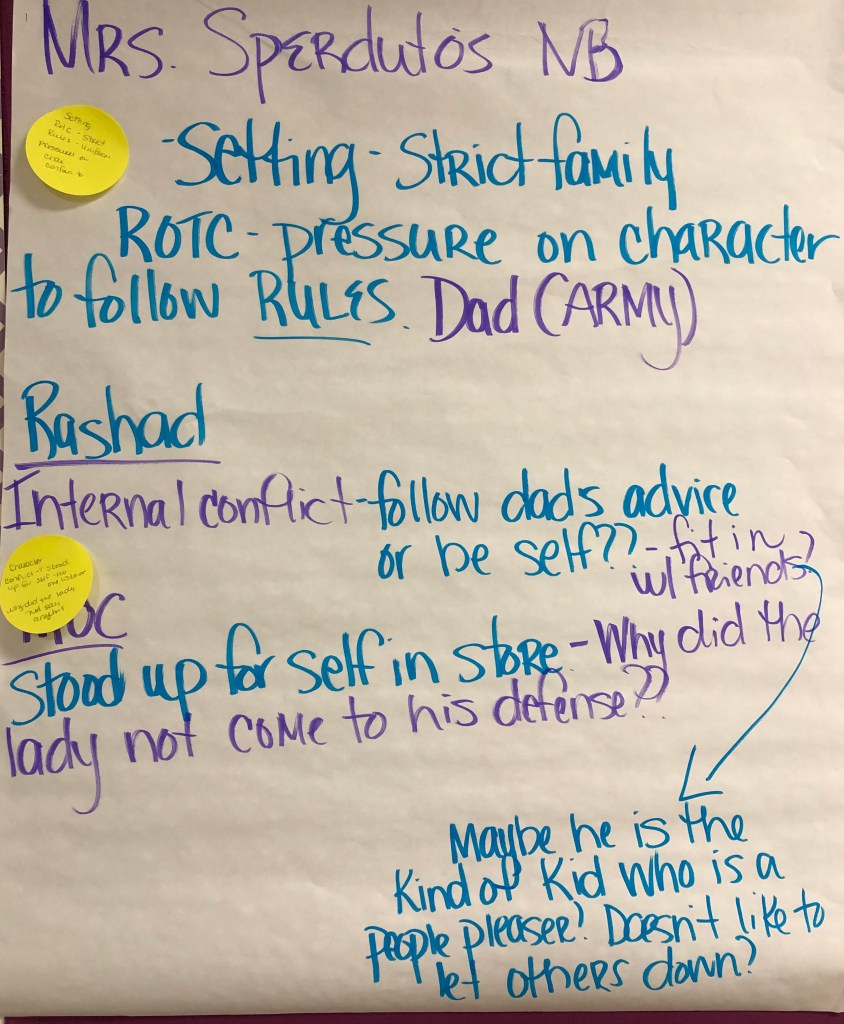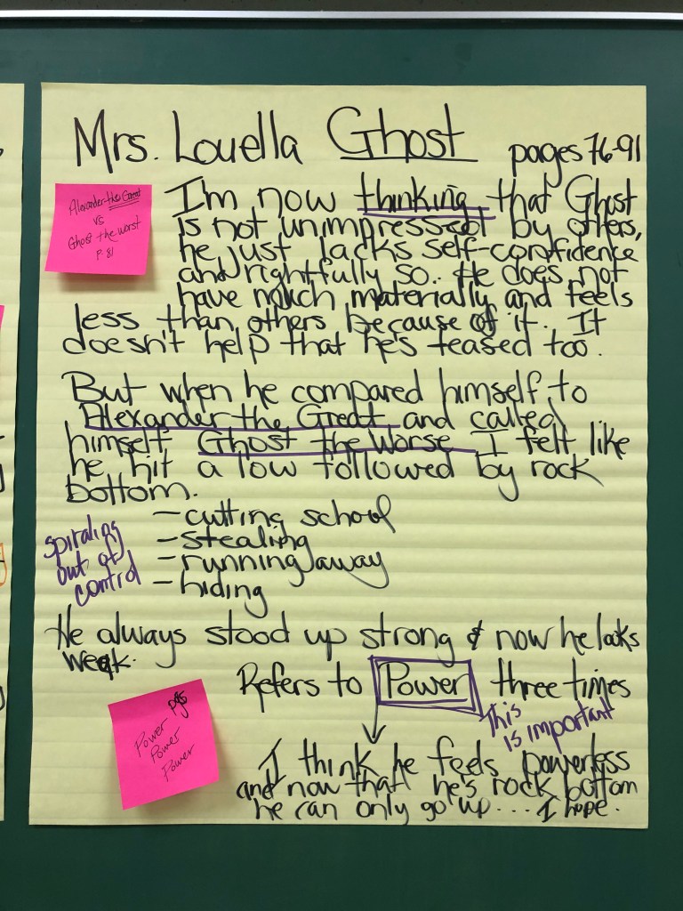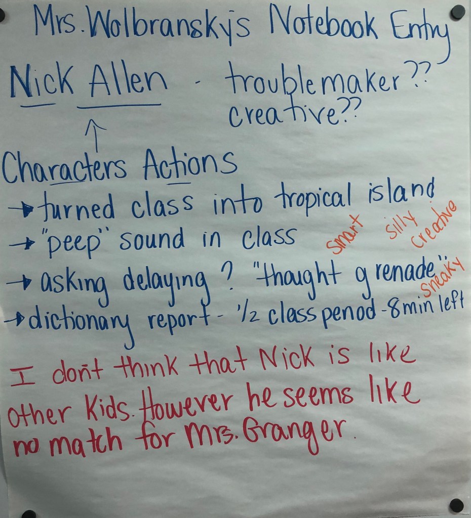 This is really challenging work and needs a lot of modeling and peer discussion in the form of turn and talk. But with persistence, I am seeing that the work is paying off. The inferring about character has grown deeper than the obvious surface level thinking and there is plenty of room to scaffold this work.
