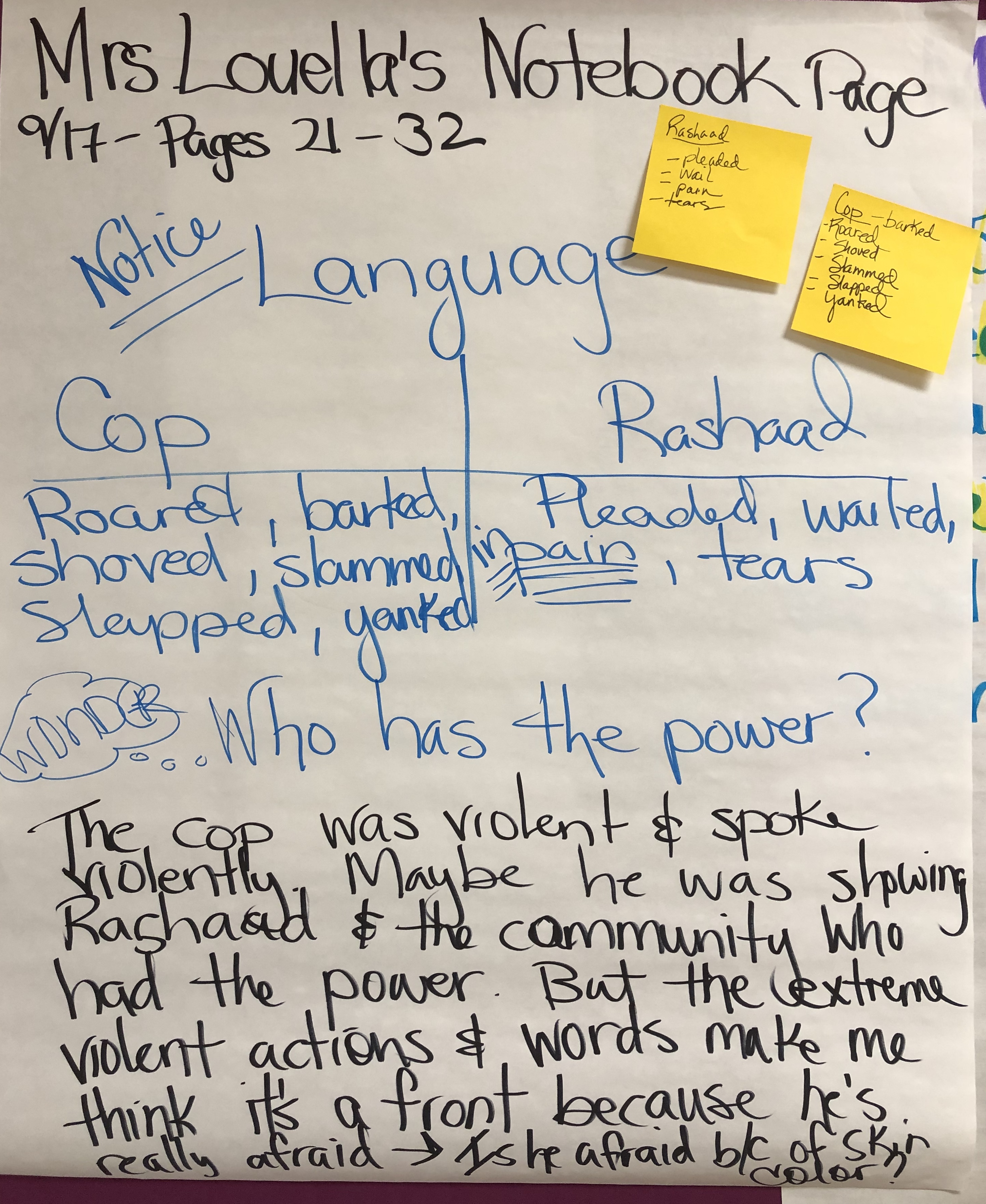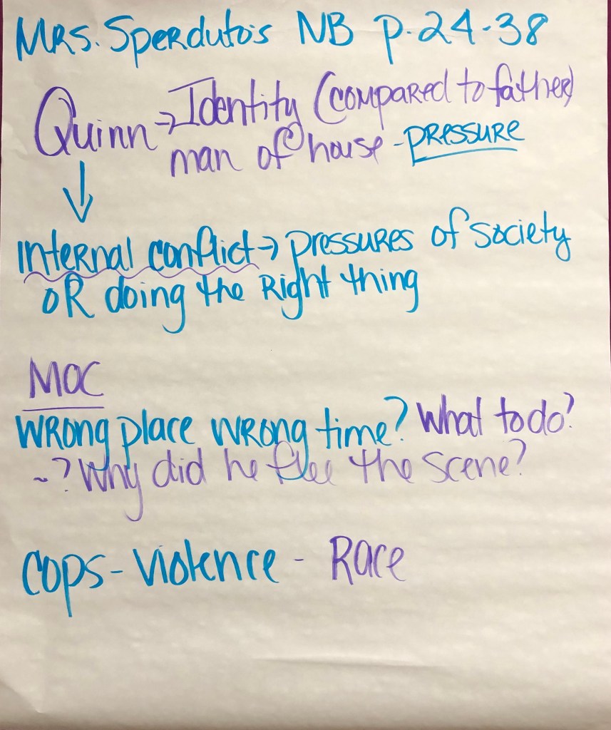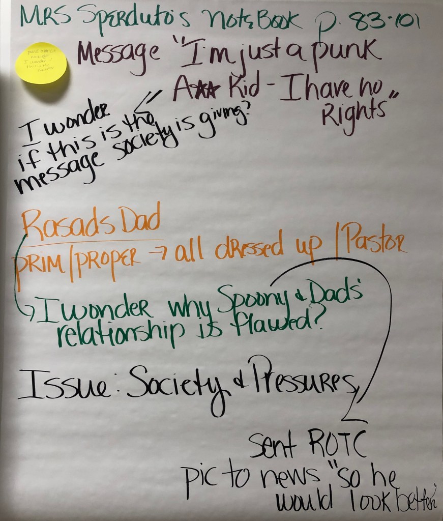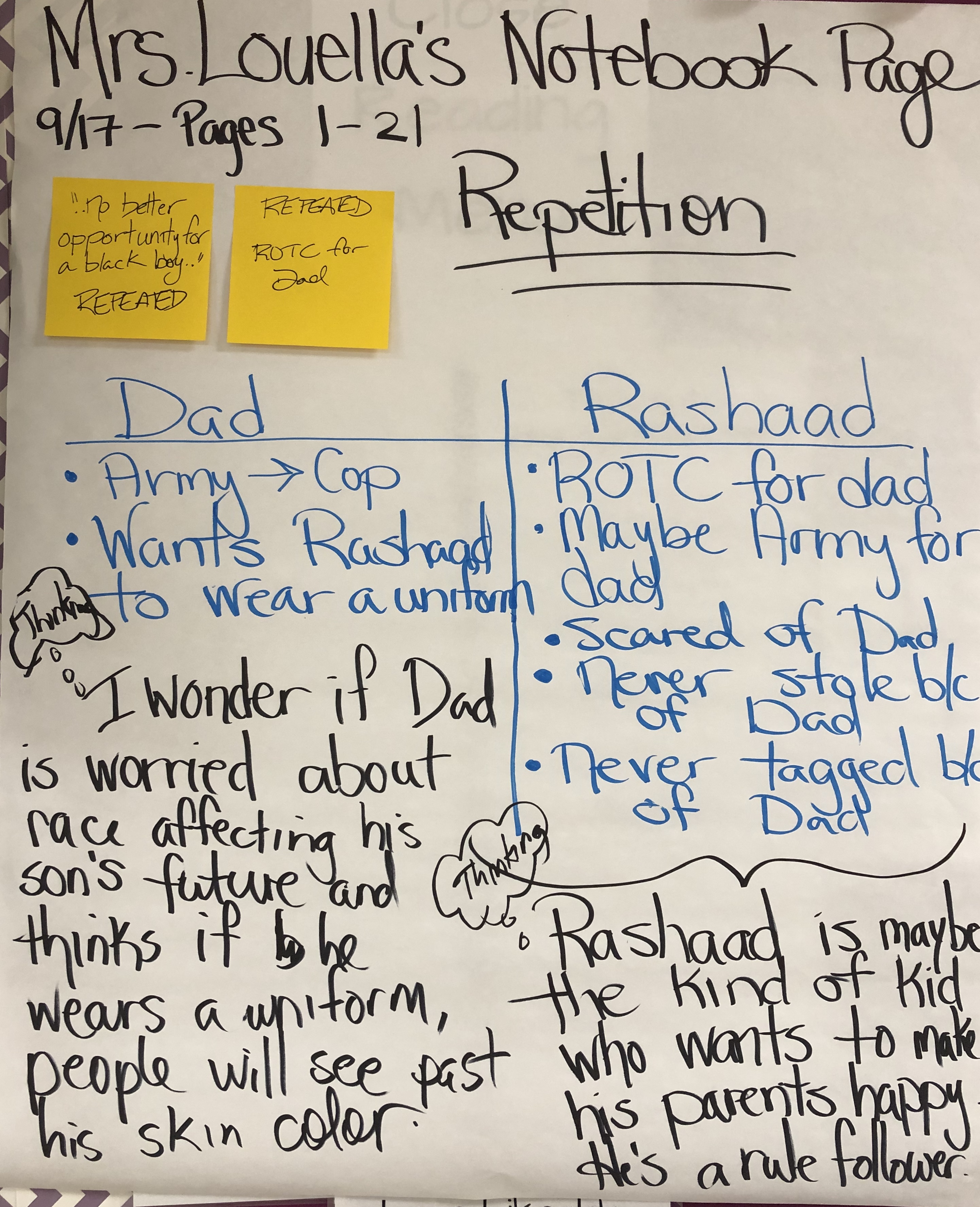 I’ve been working with some middle school students trying to push their thinking about character by using the lenses to look for patterns that help us make more inferences about character. At the time we were watching parts of the movie The Blind Side. As students were examining Michael Oher, the main character, even when looking at patterns through lenses, their thinking about Michael was very obvious.