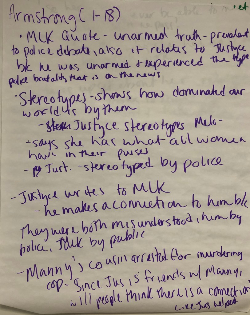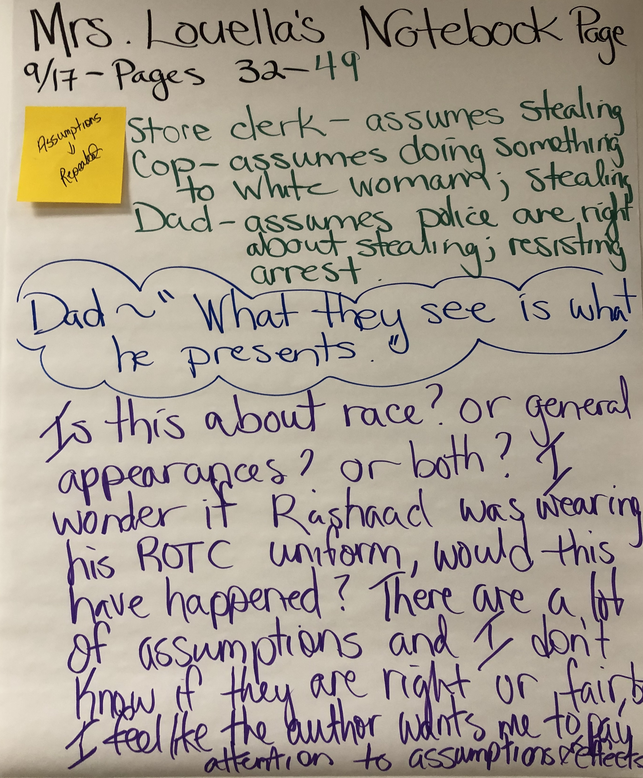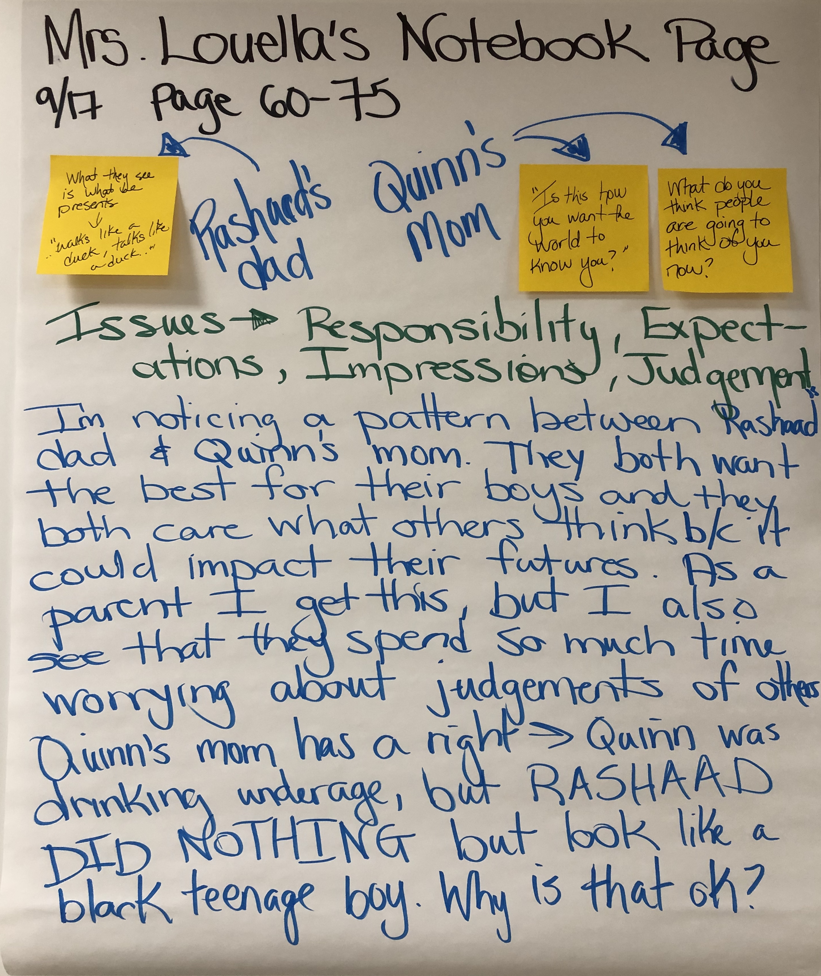I’ve been working with some middle school students trying to push their thinking about character by using the lenses to look for patterns that help us make more inferences about character. At the time we were watching parts of the movie The Blind Side. As students were examining Michael Oher, the main character, even when looking at patterns through lenses, their thinking about Michael was very obvious.