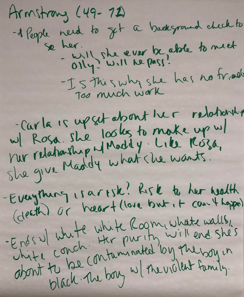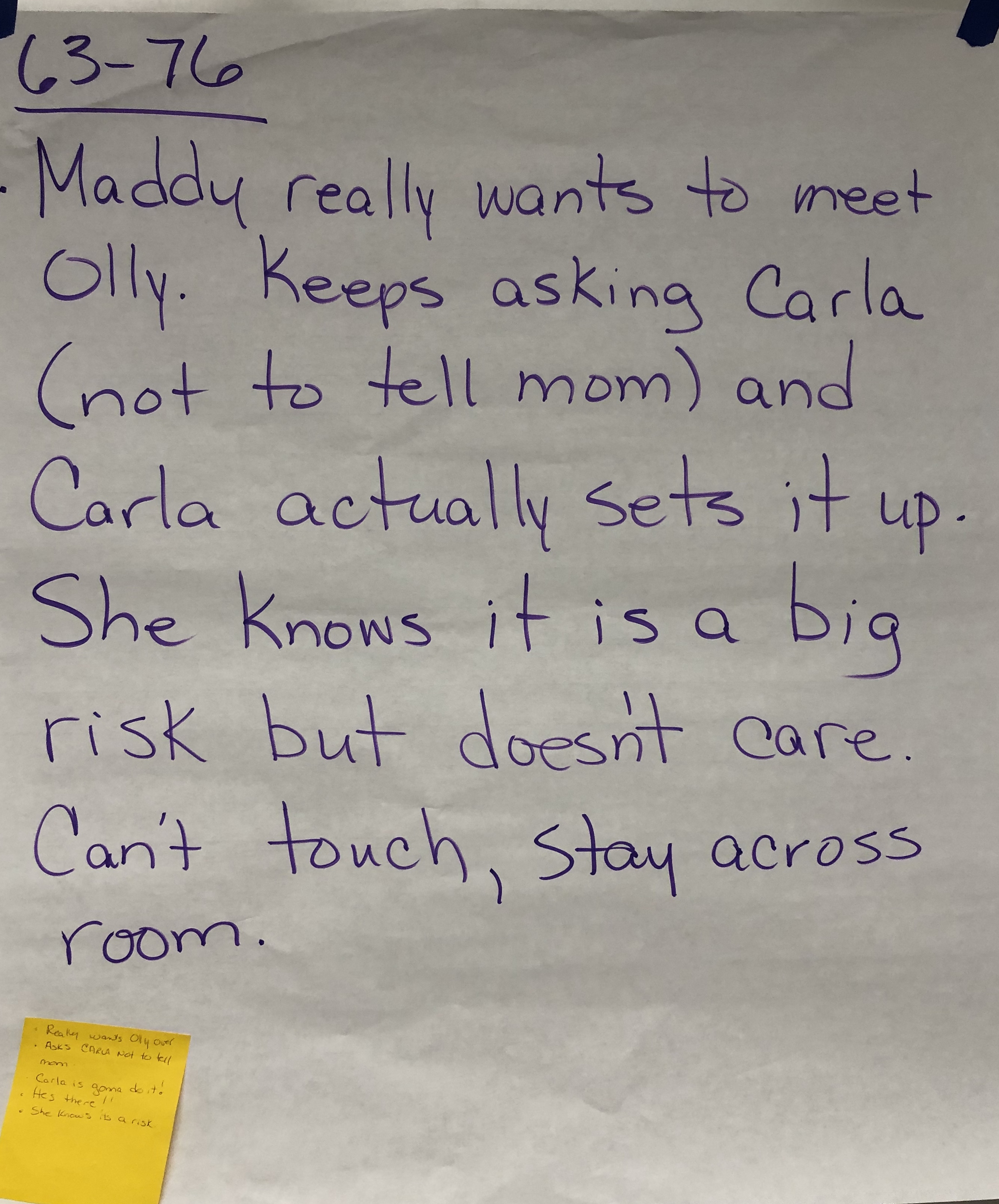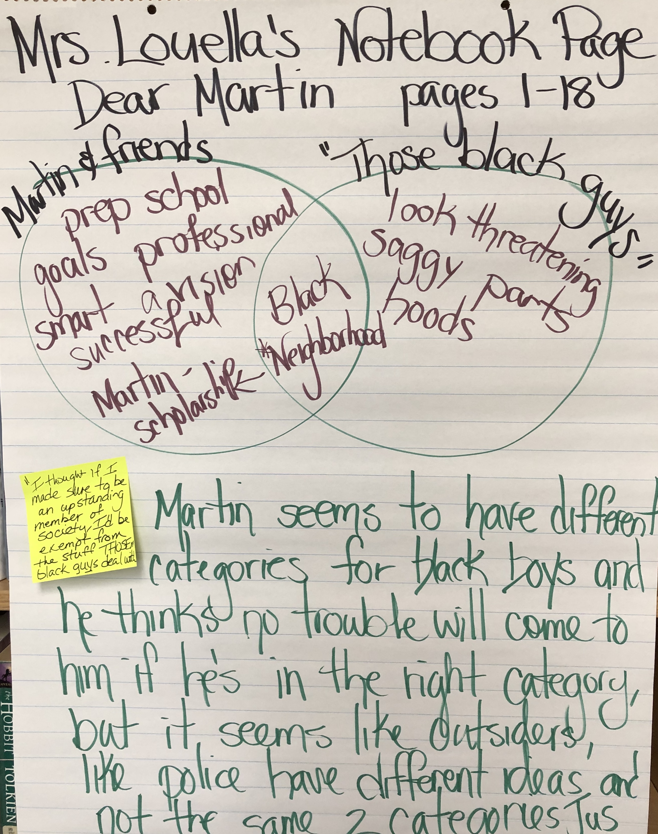 I tried to have kids examine what the character really needs, and if the need is being met or not being met, what reaction do we see in the character? It took me back to my kids when they were little and finding the need behind their behavior. One of my children, for example, would become very angry and inconsolable at times. We could have ignored it and hoped it would go away, but the behavior was during times when his world was not predictable. He was a kid who needed order and structure and when that need was not met, he would act out because he didn’t feel safe. So why was Michael really so quiet, shy, and lonely? What need was not being met?