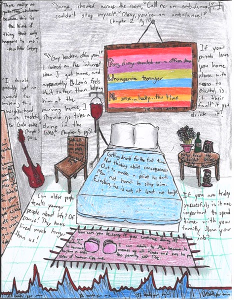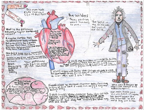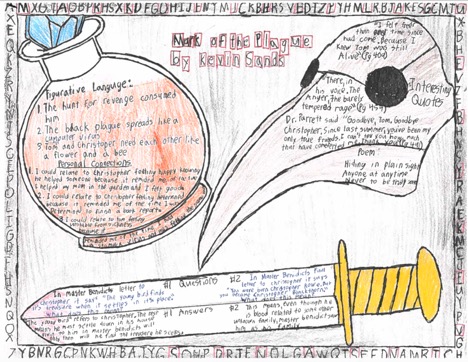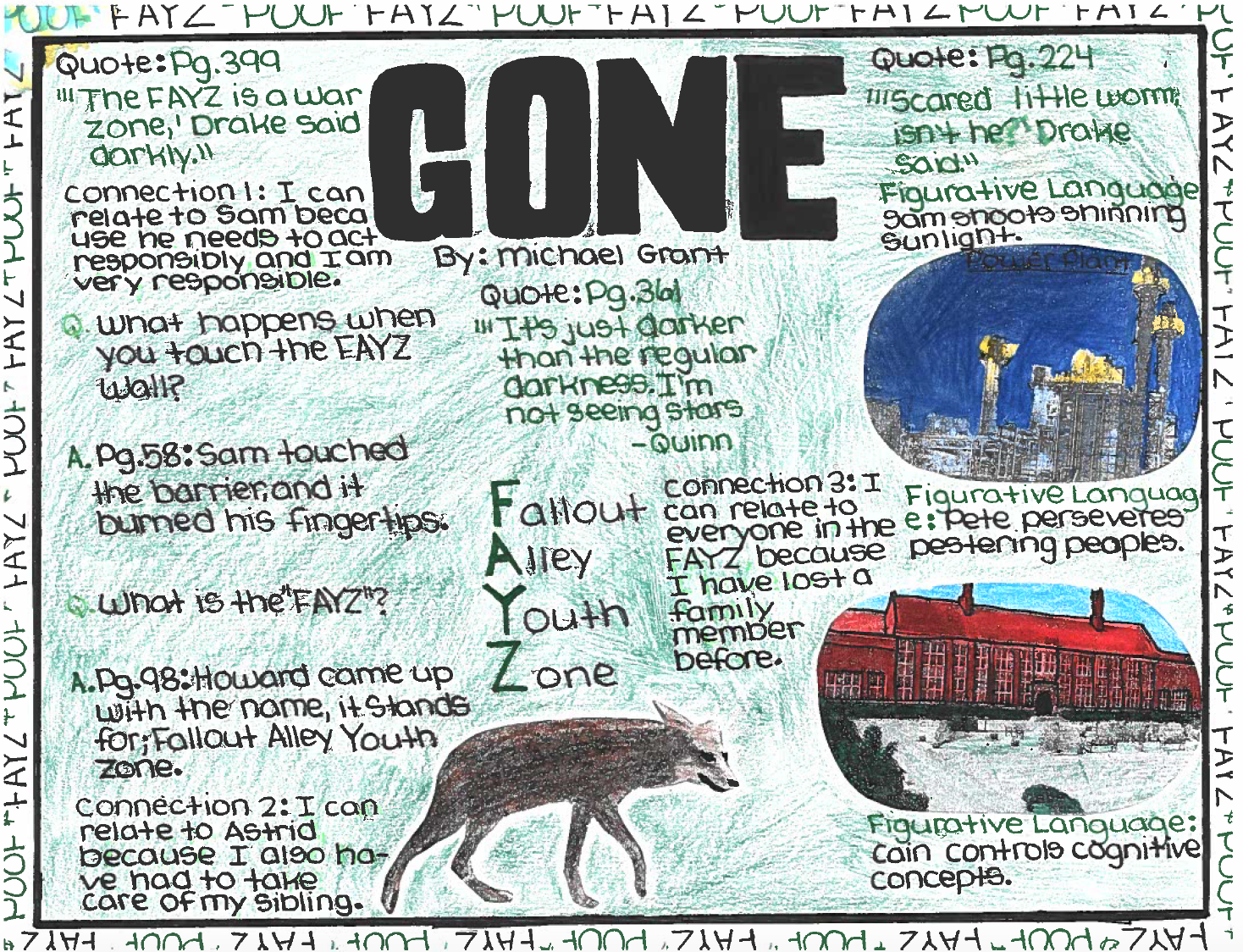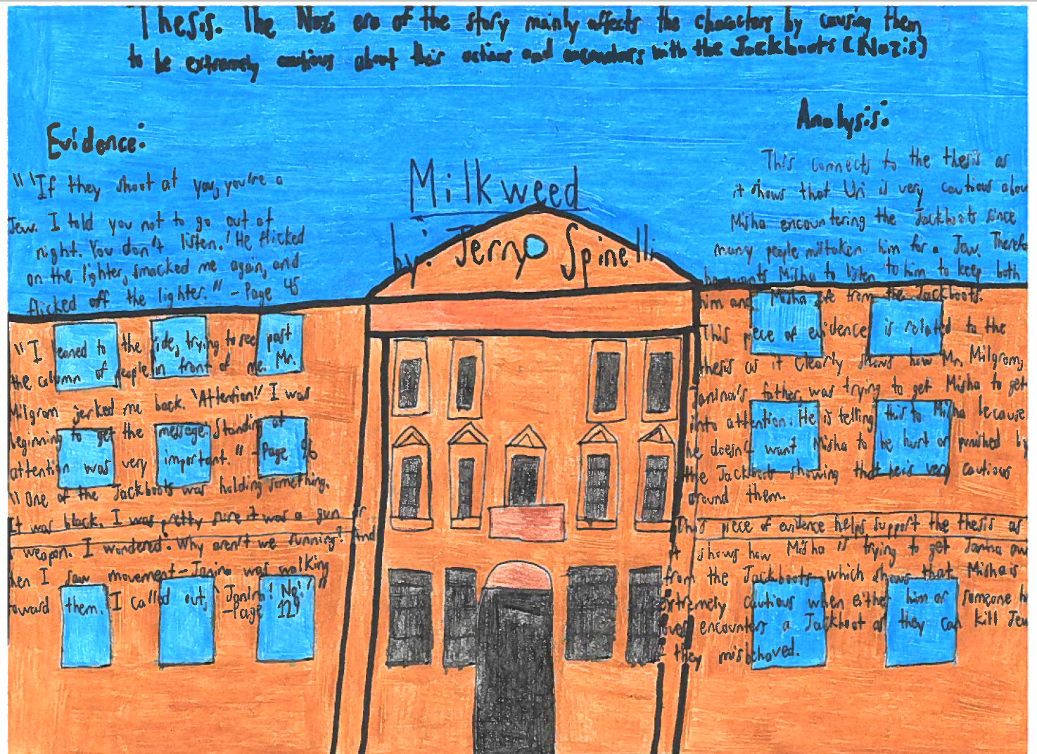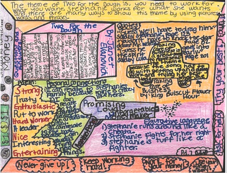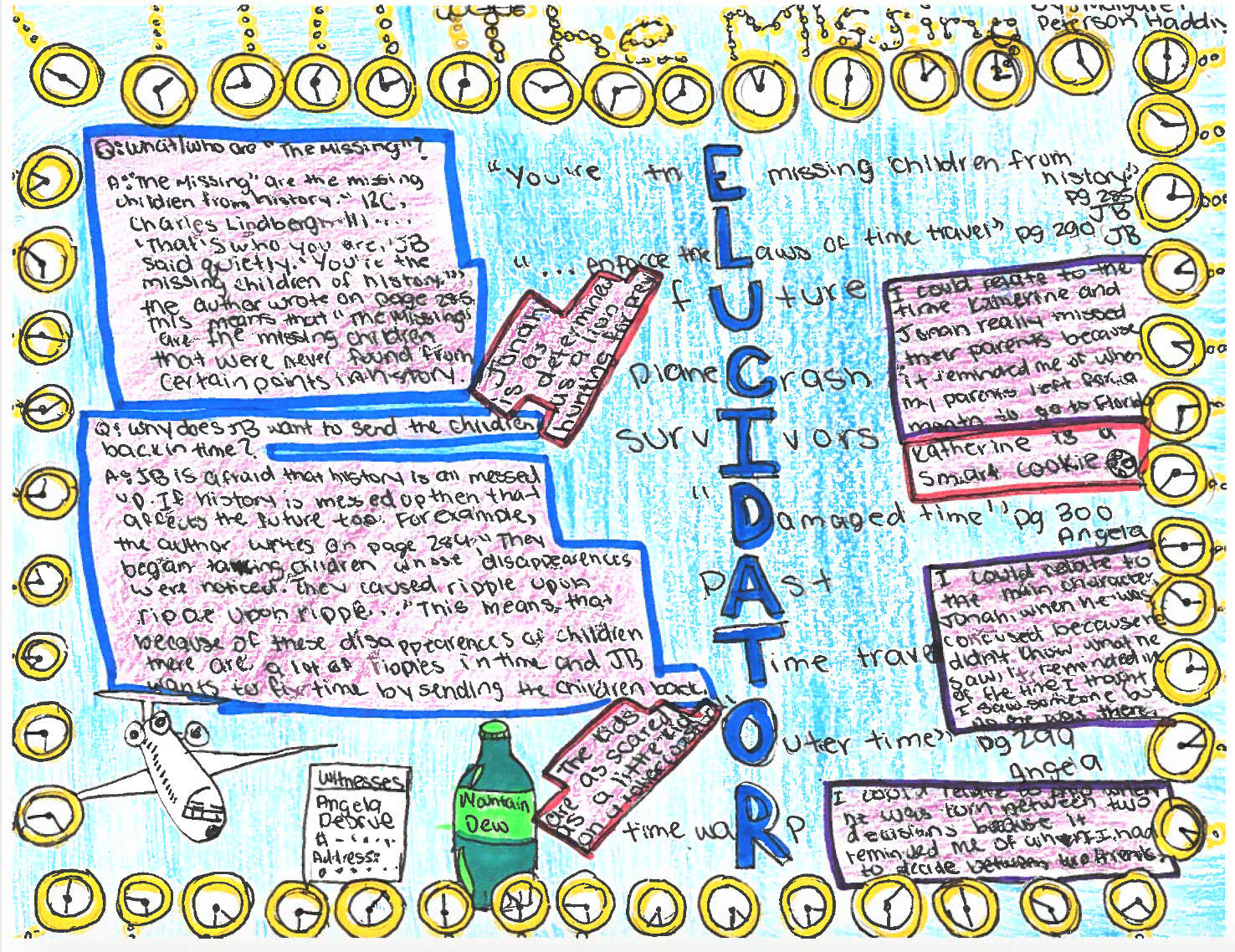 While looking for different ways to incorporate thinking about reading without writing the dreaded TDA essay, I was reminded of the one pager by Theresa who used them last year now and again (I didn’t make the connection last year) and was planning to do something similar for the dystopian book clubs. Theresa has seen a lot of engagement around this work and generously shared her work.
